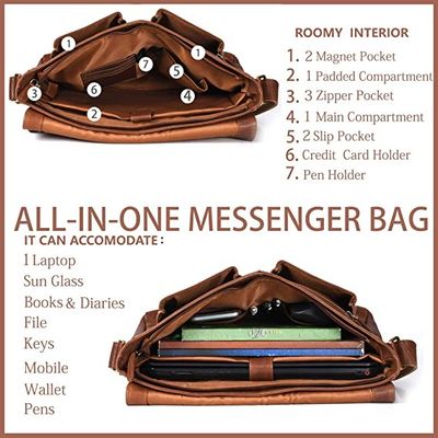 Leather Messenger Bag for Men & Women 14inch laptop Bag for Travel College Work